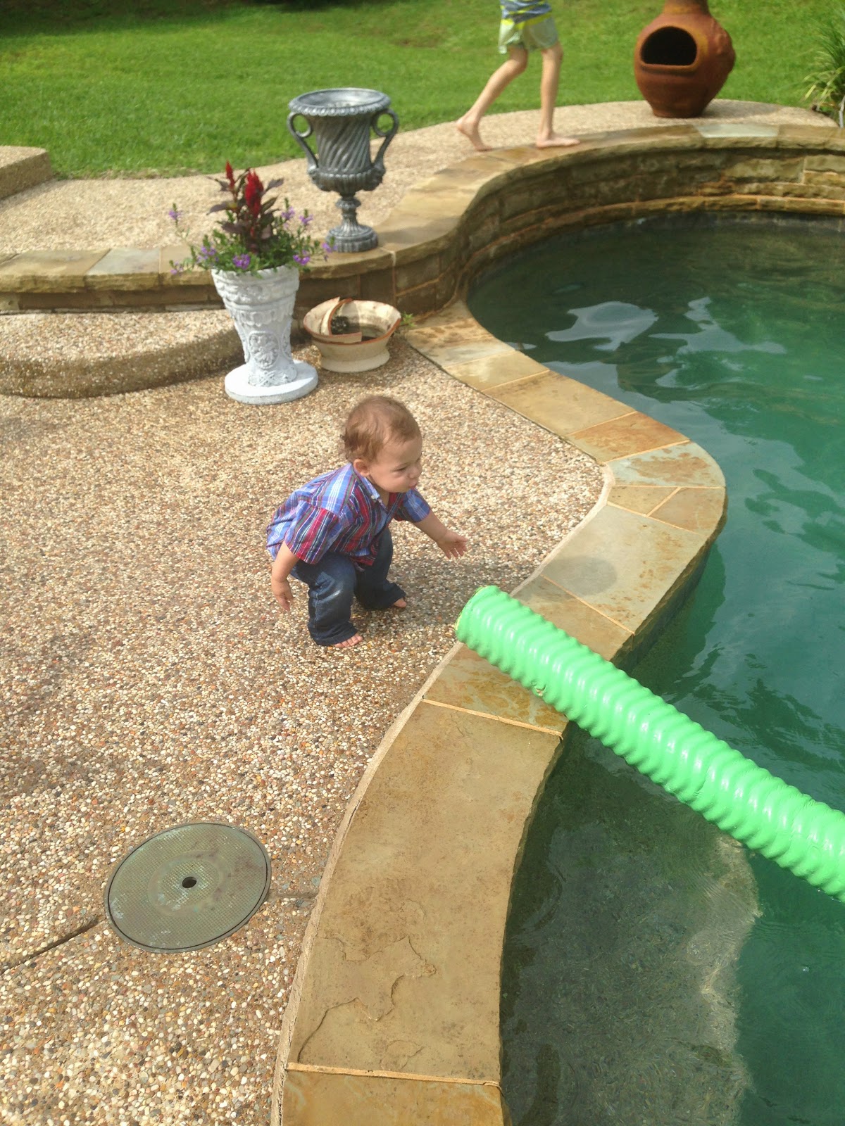 He usually his pretty happy just walking around the pool and throwing things in, but he decided he needed in today...